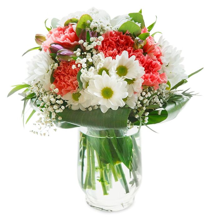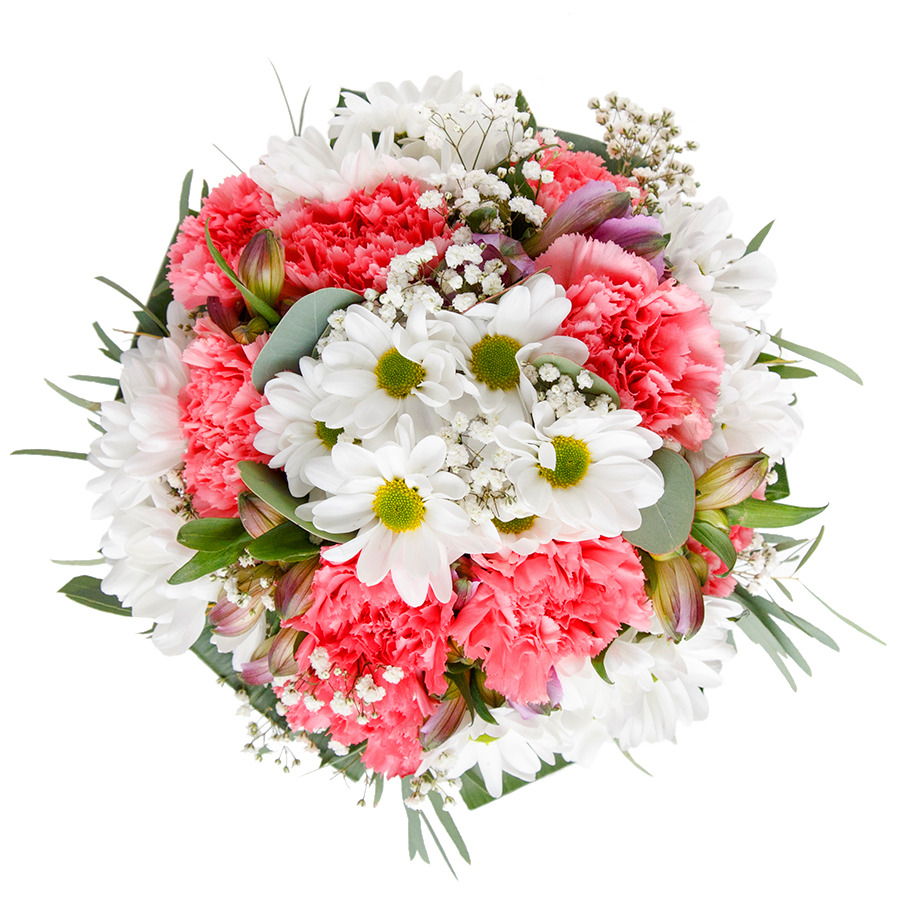 The white chrysanthemums were elegant and the pink carnations pure. A stunning bouquet.
